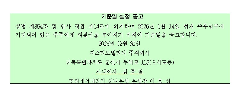 »ó¹ý Á¦354Á¶ ¹× ´ç»ç Á¤°ü Á¦14Á¶¿¡ ÀǰÅÇÏ¿© 2026³â 1¿ù 14ÀÏ ÇöÀç ÁÖÁÖ¸íºÎ¿¡ ±âÀçµÇ¾î ÀÖ´Â ÁÖÁÖ¿¡°Ô Àǰá±ÇÀ» ºÎ¿©Çϱâ À§ÇÏ¿© ±âÁØÀÏÀ» °ø°íÇÕ´Ï´Ù.